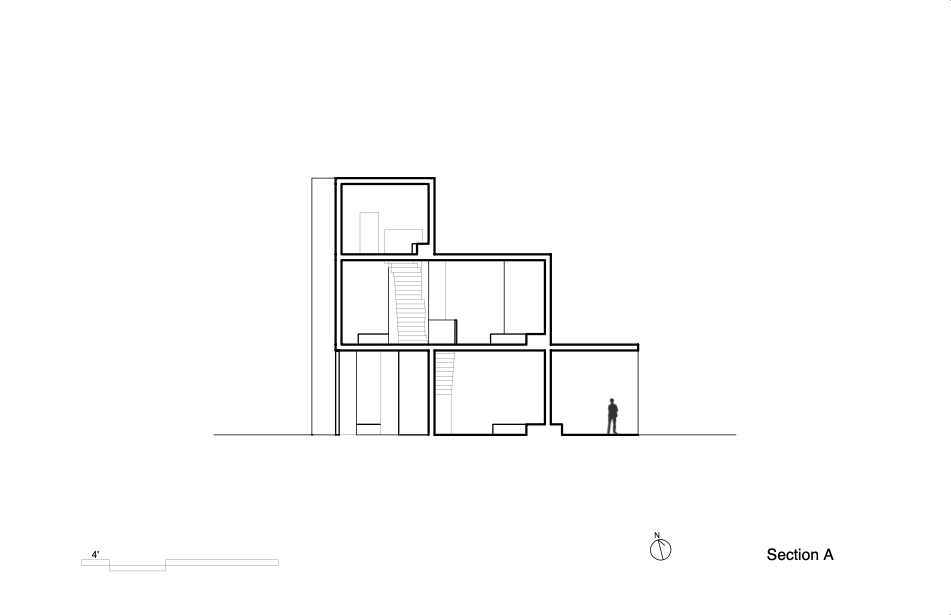 The floor plans and elevation below illustrate the functionality of this building and provide insight into the creative process.