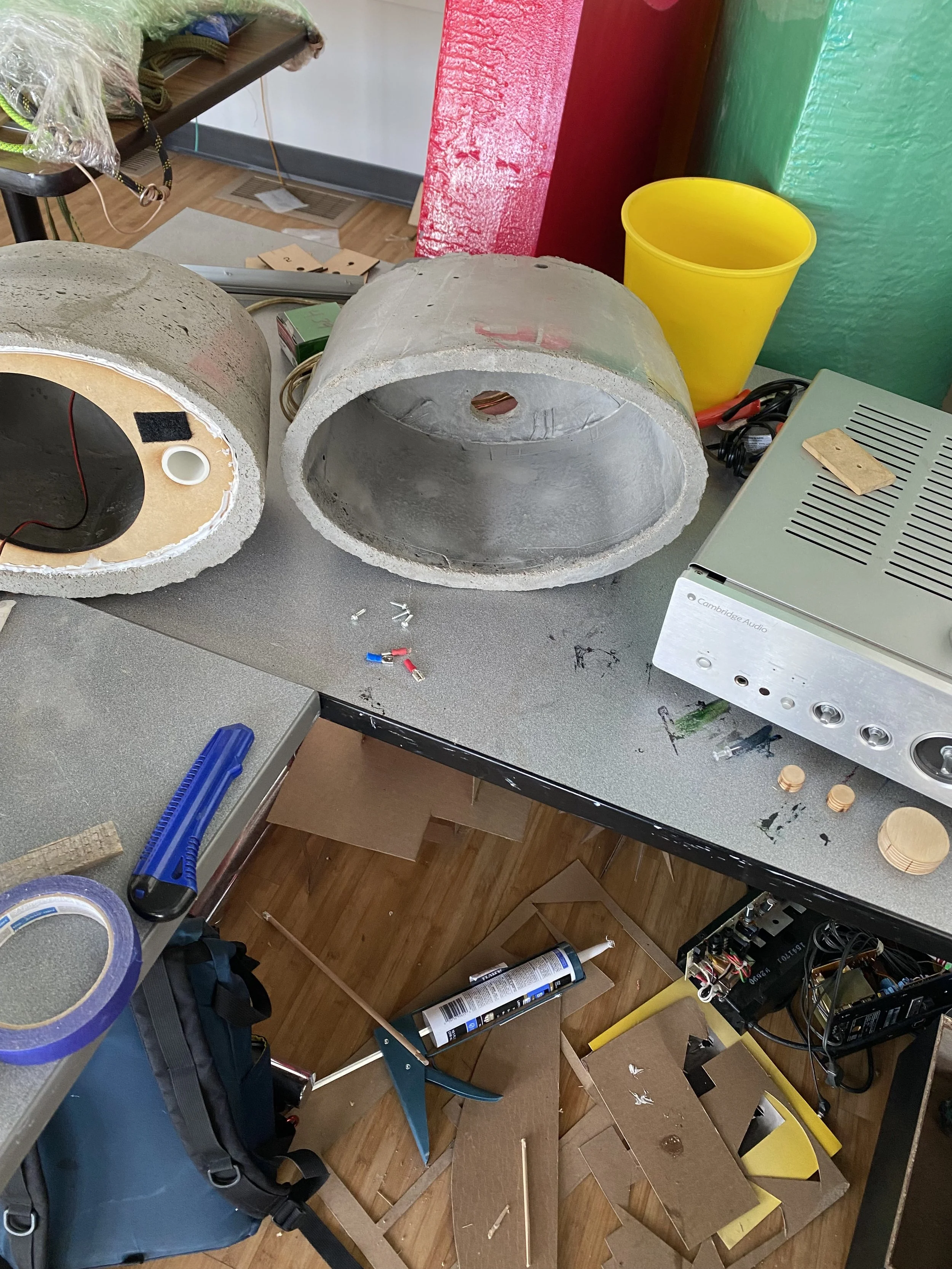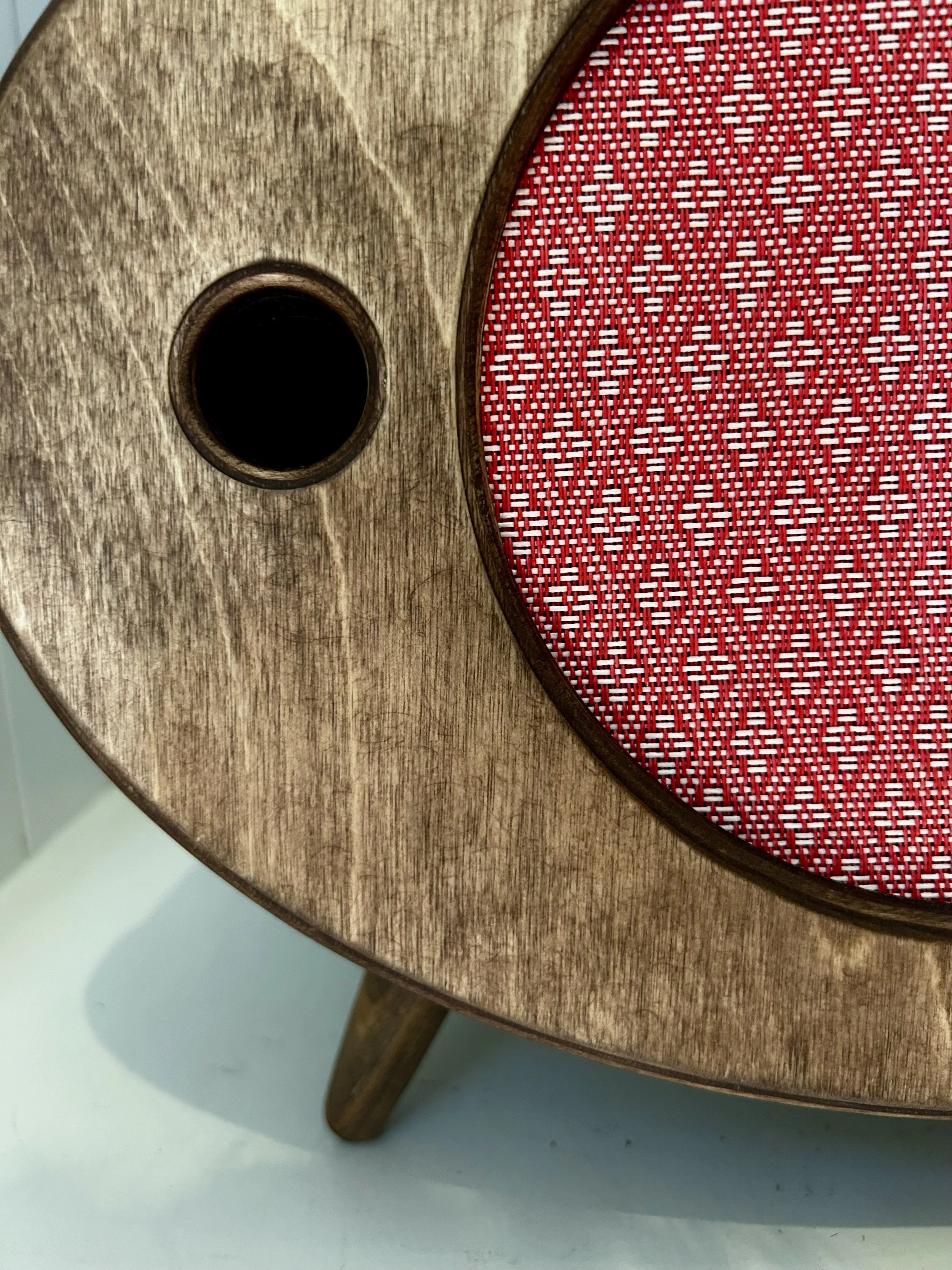Wood and concrete come together in perfect harmony to give birth to a resolute structure with the power to deliver rich and defined audio. As much as the captivating horn draws our attention, it is the inclusion of these carefully placed slits that allow the wood to gracefully mold into shape. Every element of the design has been meticulously crafted to ensure smooth connections and concealed joints. For convenience and peace of mind, the legs and tweeter horn can be effortlessly detached for secure transportation or swift replacement. Additionally, the magnetic facade of the wood facilitates effortless access during routine maintenance. To further enhance the experience, strategically positioned portholes have been placed next to the grill, enriching the sound quality and elevating the bass to new heights.